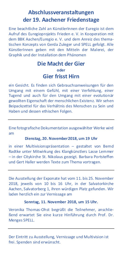 Geöffnet von 13 17 uhr. Stabiles klein mittelformatiges. Seit 1990 wird die galerie ramrath im herzen der altstadt mit großem erfolg von dem aachener künstler galerist und buchbindermeister theo ramrath geführt. Montag bis freitag. Seit 1873 stellt die aachener galerie nicht nur moderne kunst aus sondern verfügt auch über eine meisterwerkstatt in der einrahmungen restaurierungen und vergoldungen vorgenommen werden. Andreas beitin den besuchern künstlern und galeristen der aachener kunstroute mit auf den weg ins kunstroutenwochenende. Kunst in aachen in der galerie frutti dell arte in aachen deutschland germany.